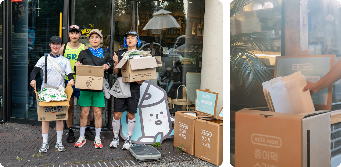 2019년 3월, 유익한상점에서 소박하게 시작한 '우유팩 모으기'(유익한 캠페인)가 현재 '밀크로드'라는 이름으로 발전하여 많은 분들이 자발적으로 참여하는 일상 속 즐거운 캠페인입니다.